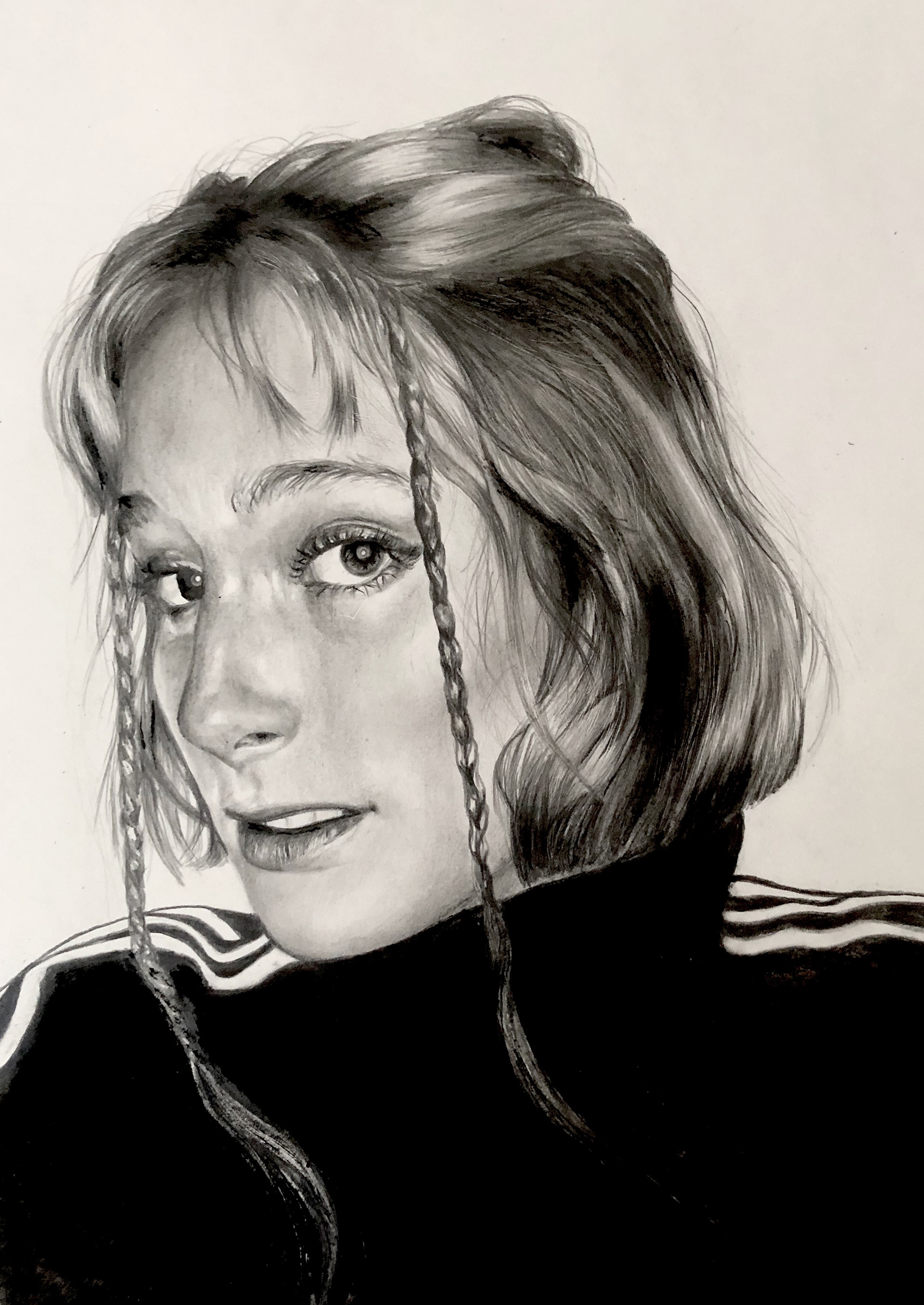 Emprendimiento personal de retratos a pedido en grafito y carbón. Instagram: @cl.arte