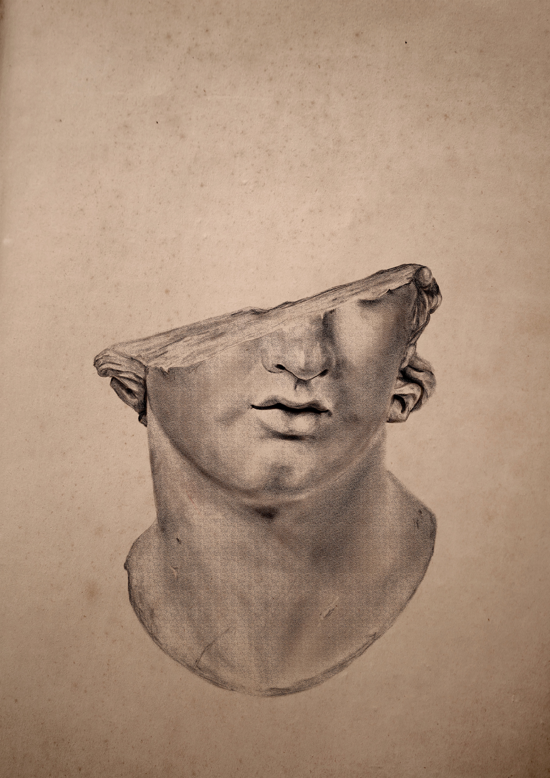 Ilustración inspirada en la escultura "Fragmentary Colossal Head of a Youth" del MET.