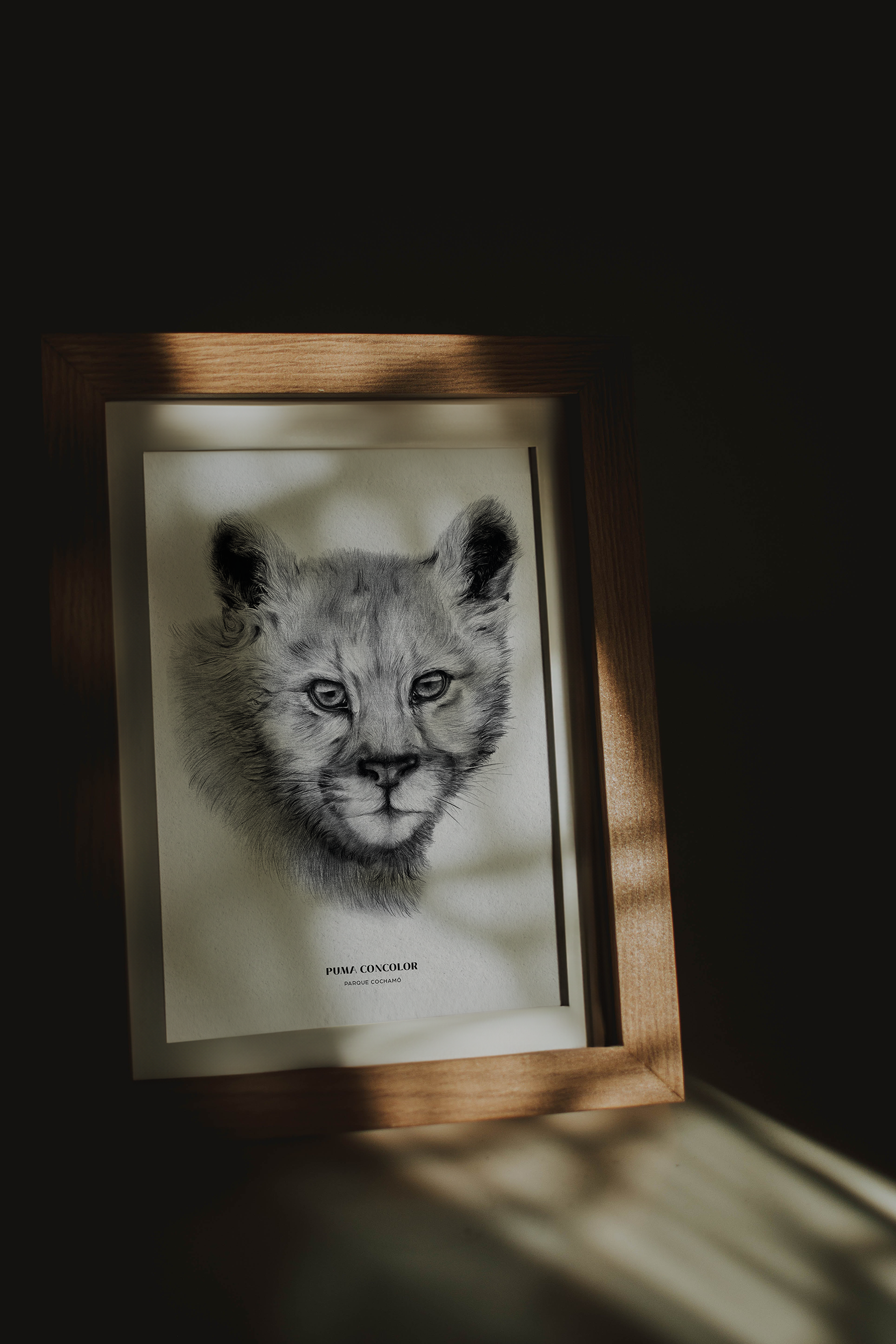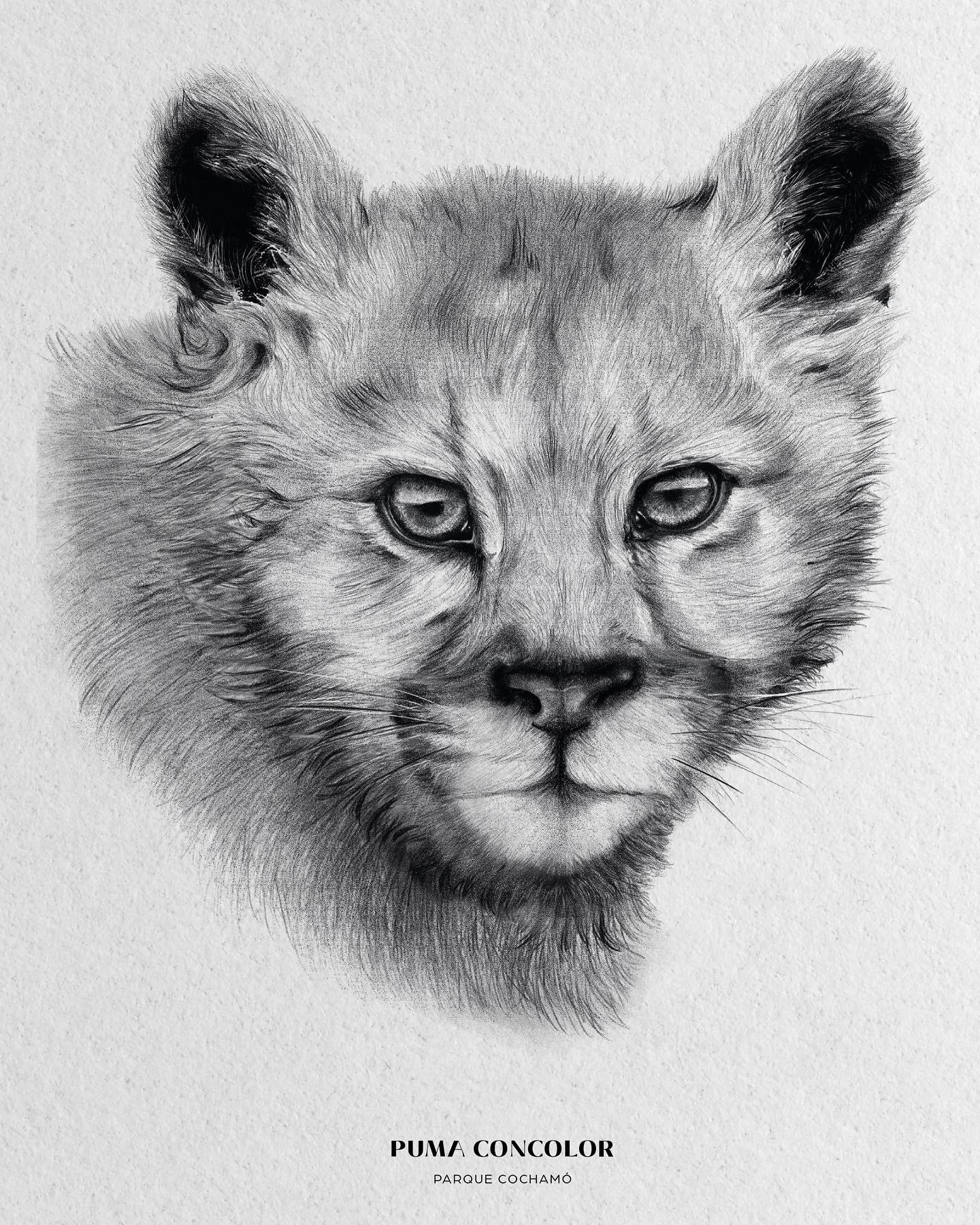 Ilustración del Puma Concolor, nativo de la zona sur de Chile para Fundación Parque Cochamó. Ilustración utilizada para poleras y láminas.